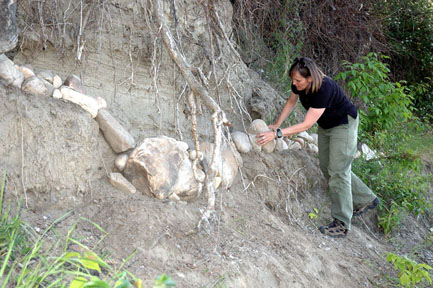 collected along the south bank of the river.